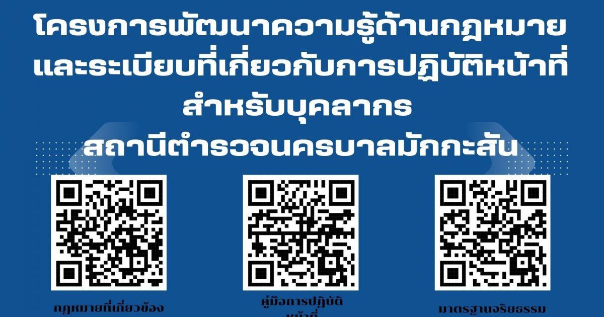 ข้าราชการตำรวจสถานีตำรวจนครบาลมักกะสัน สามารถดาวน์โหลดข้อมูลได้จาก QR Code นี้ เพื่อใช้ในการศึกษาและนำไปใช้ในการปฏิบัติหน้าที่ได้อย่างถูกต้อง