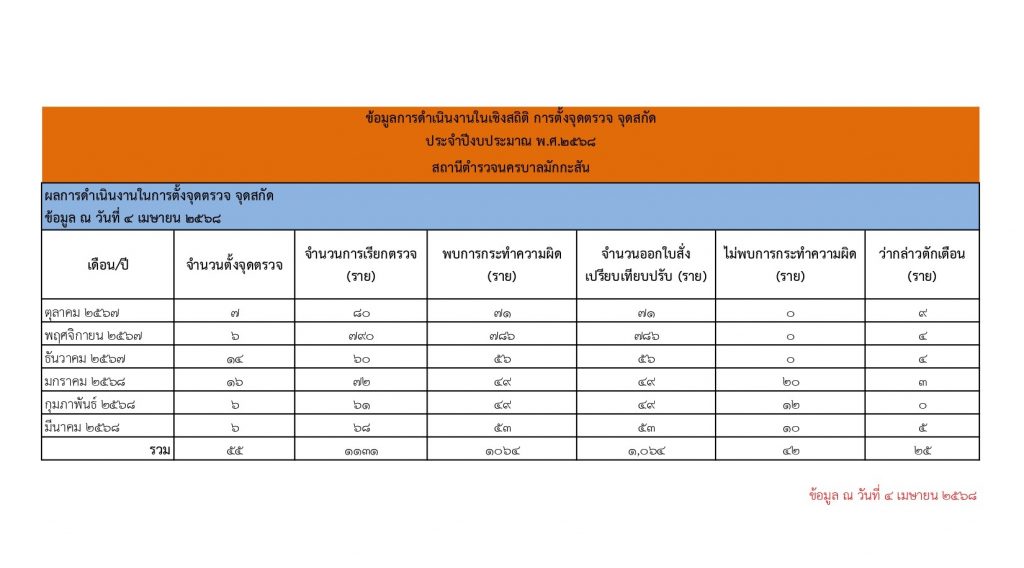 ข้อมูลผลการดำเนินงานในเชิงสถิติ