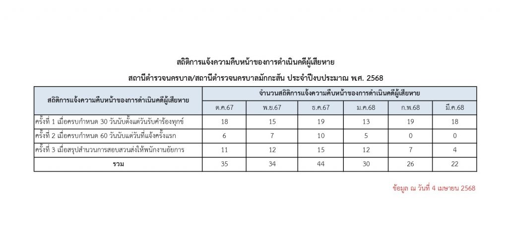 การแจ้งความคืบหน้าของการดำเนินคดี