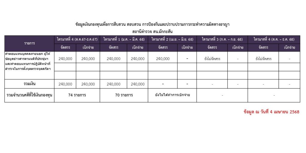 O13 ข้อมูลเงินกองทุนเพื่อการสืบสวน สอบสวน การป้องกันและปราบปรามการกระทำความผิดทางอาญา